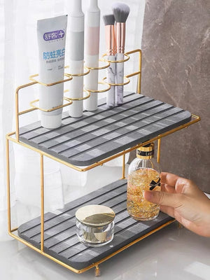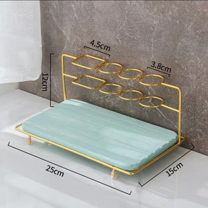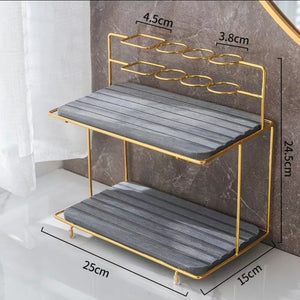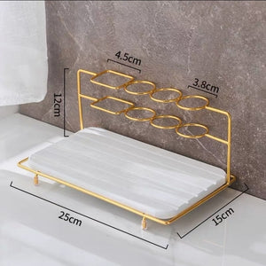 Introducing the Golden Frame Bathroom Storage Rack - the perfect addition to your daily routine! Made from premium diatomaceous earth, this sleek and modern holder not only looks great but also provides many benefits for your oral hygiene.