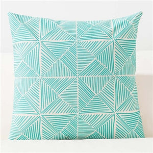 Blue-toned geometric cushions to create the perfect chill vibe.