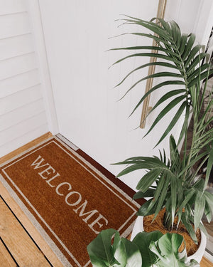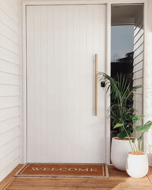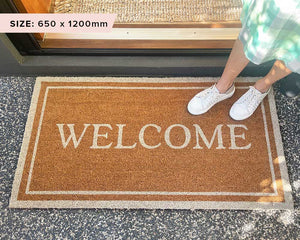 This elegant Welcome design with neutral and natural tones will elevate the look of any entrance. A simply stunning, sustainably made doormat.