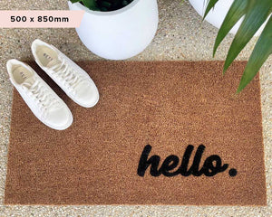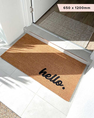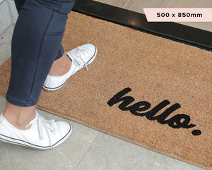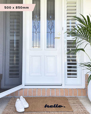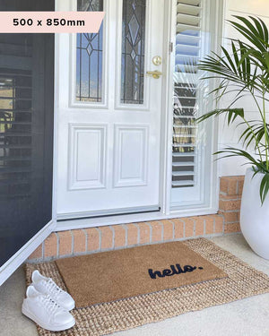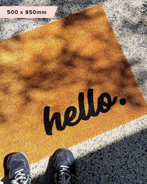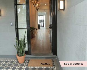 One of our original designs that has lasted the test of time, this beautiful Hello Mate features our signature fade-resistant finish, perfectly positioned bottom right of the mat.