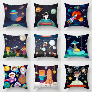 Put your aspiring astronauts to sleep next to these cosmic cushions.