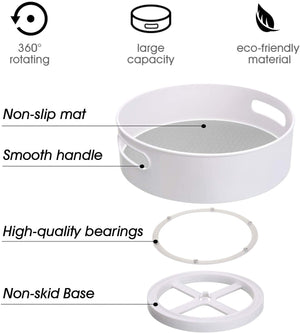 The perfect companion to any kitchen, this rotating lazy Susan has a super convenient and easy-to-use handle. This rotating storage container is designed to fit on your kitchen counter and keep all your essentials organized.