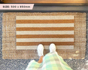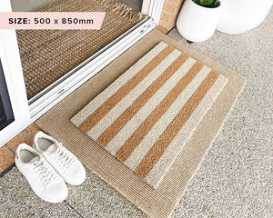This elegant stripe design with neutral and natural tones will elevate the look of any entrance. A simply stunning, sustainably made doormat.