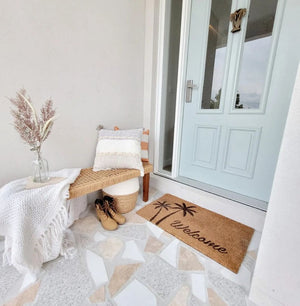 Our Welcome Palms Doormat is a beautiful and unique way to welcome friends and family to your home.
