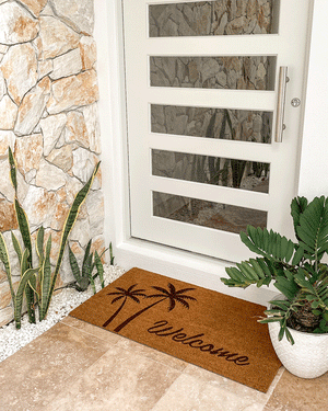 Our Welcome Palms Doormat is a beautiful and unique way to welcome friends and family to your home.
