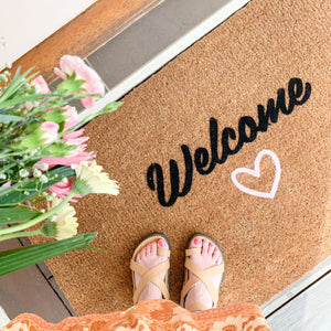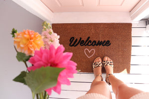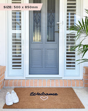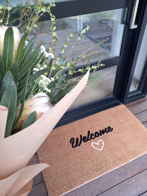 Featuring a soft pink love heart, you can't help but love coming home to this beautiful and unique Door Mate.